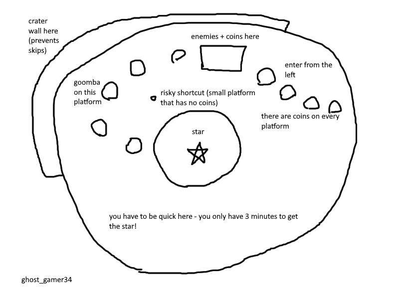 ghost_gamer34 was able to draw the layout of the Danger Zone, and describes it as being "the smallest part of the level which has few places where you can stand on". The Danger Zone contains a star (see missions) which is likely the first star a player would be able to get.