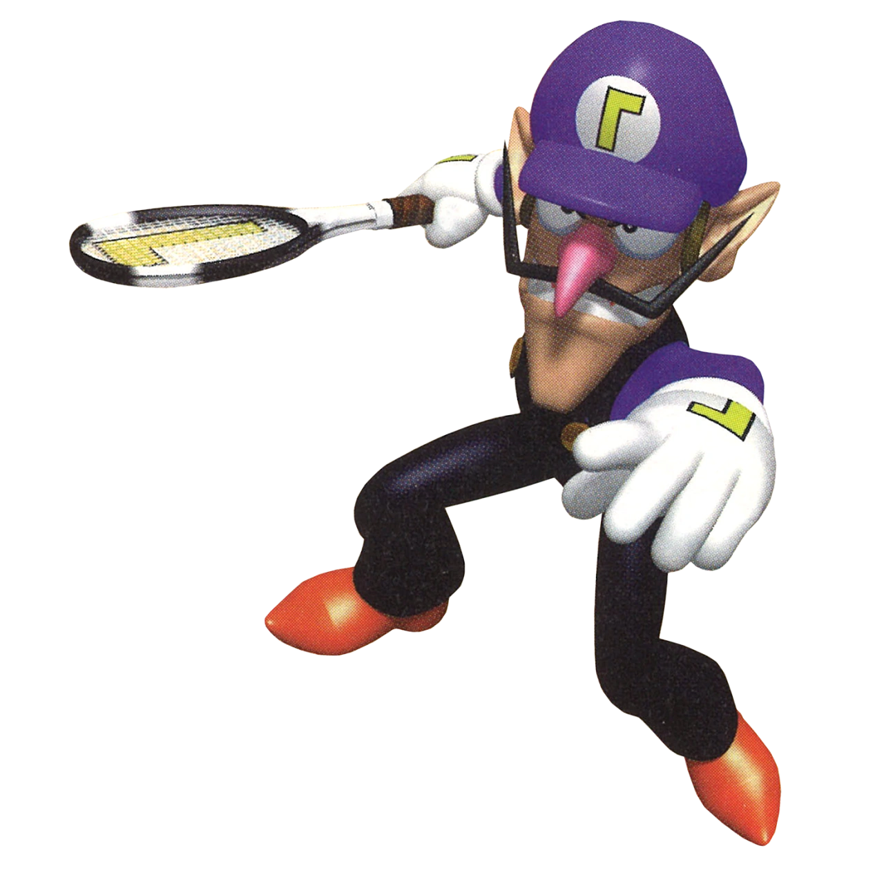 Waluigi is a recurring character found in the Mario series who was made to rival Luigi. Waluigi mainly appeared in spin-off games like Mario Tennis and Mario Party 3. Waluigi is known to be Wario's partner ever since Waluigi made his initial appearance in Mario Tennis for the Nintendo 64. The details of Waluigi's past are unclear since he has no confirmed background, although he has evidently been antagonizing the Mario Bros., especially Luigi. In his debut as seen in the opening of Mario Tennis, where he and Luigi confront each other, it is implied that they have been fighting for quite some time.